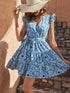Women's Fashion Full Print Fresh V-neck Party Dress Women Fashion Bohemian Vacation Style Flying Sleeve Mini Dresses