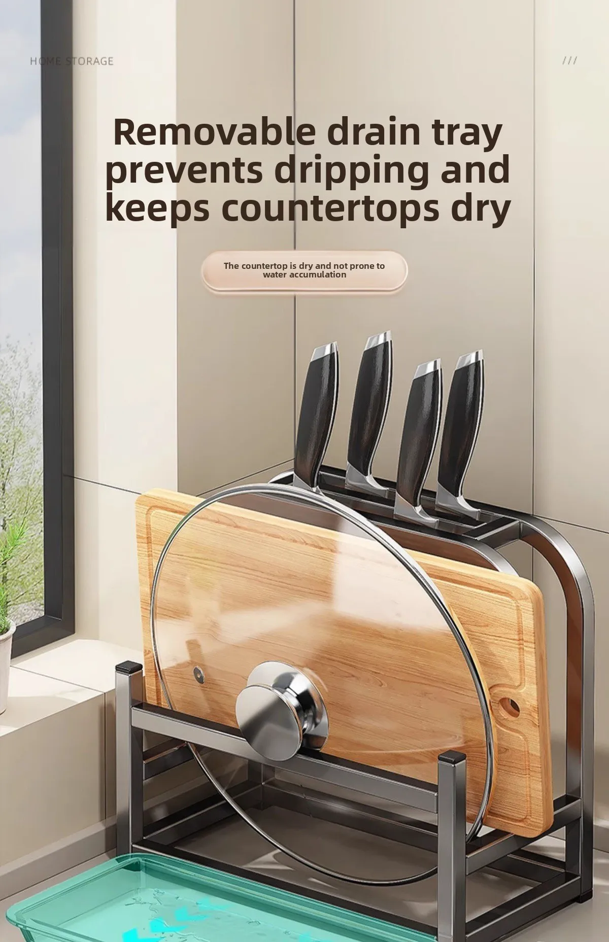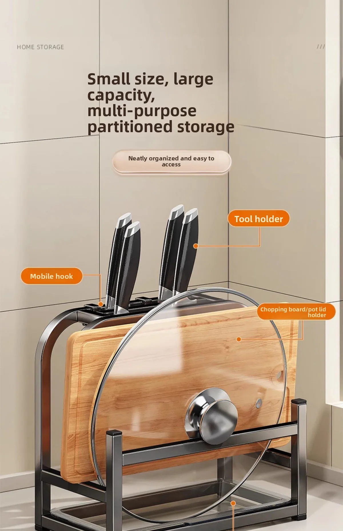 Kitchen knife holder, storage rack, multifunctional kitchen knife cutting board, pot cover integrated storage rack, countertop